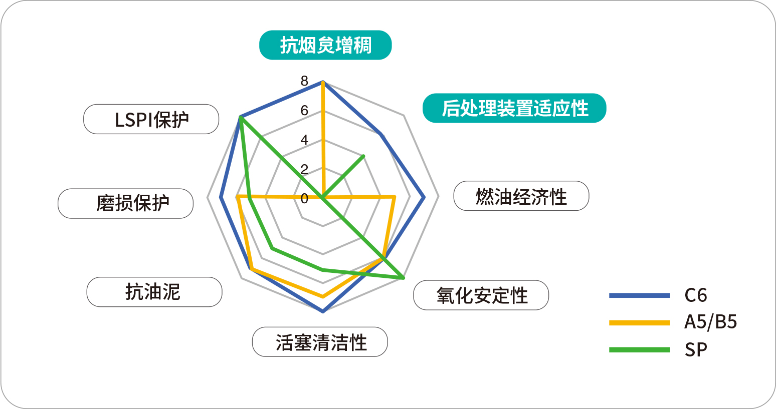 低灰配方適國六:低硫酸鹽灰分(≤0.8%)配方兼容國六環(huán)保設(shè)備(GPF等)