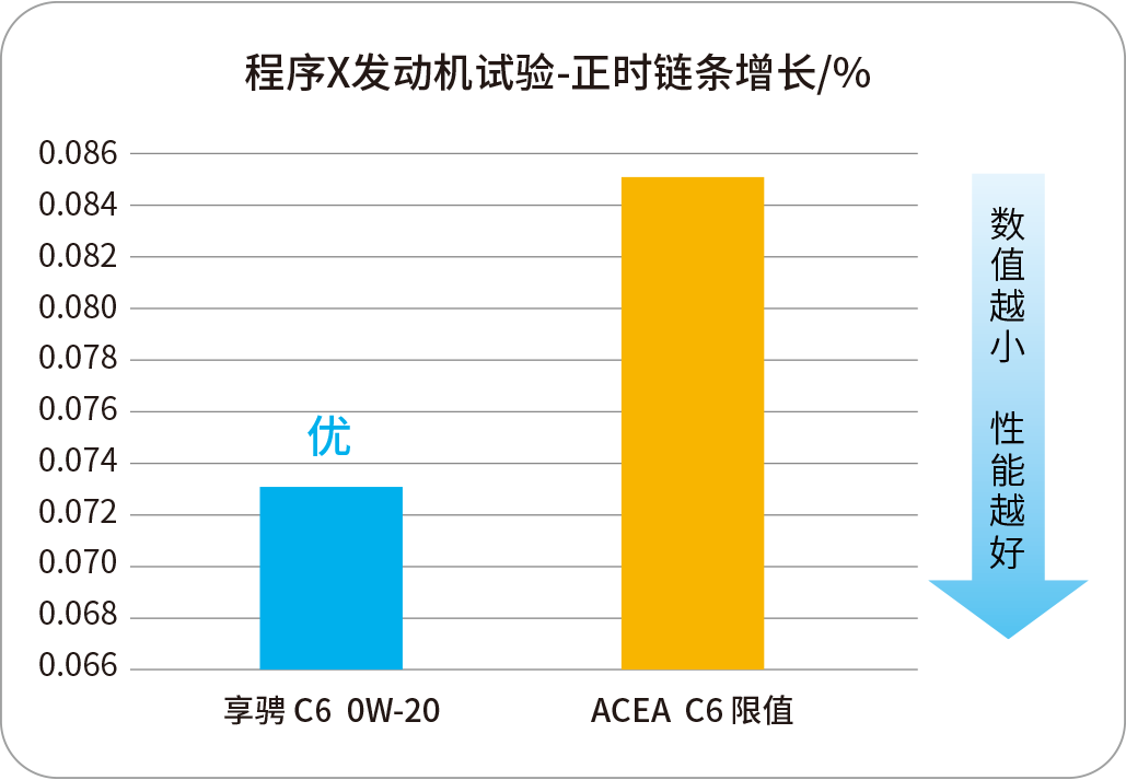 采用日本【ENEOS株式會社】精選的全合成基礎(chǔ)油和添加劑技術(shù)調(diào)配,具有超凡的清潔分散性和優(yōu)異的抗磨保護性能,有效保護正時鏈條、緩解低速早燃,持久激發(fā)愛車的動力性能,尤其適用搭載渦輪增壓缸內(nèi)直噴發(fā)動機的國六及以下車輛。
